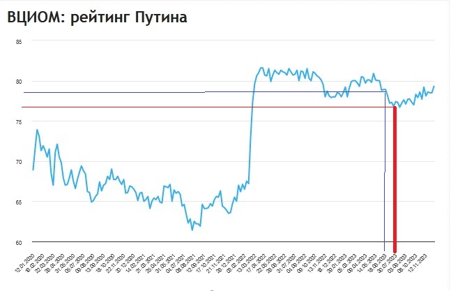 https://gogov.ru/articles/rating-putina У Кагарлицкого речь (24 июля 2023) о времени СВО. Так график показывает по сути неизменность рейтинга. Ну что это за колебания в пределах 5%? Правда Кагарлицкого только в том, что с июня по июль 2023 рейтинг действительно падал с 76% до 73%. * Или вот ещё его заявление: “Со мной знаком губернатор Волгоградской области. Старый знакомый. Я к нему прихожу и говорю: “Ну как?” Он говорит: “Всё безумно хреново. Всё очень плохо”. Я говорю: “Что плохо?” Разговор шёл замечательный: “Всё, - говорит, - я ничего не понимаю. Я здесь сижу… мы здесь сидим… Вот что бы мы ни делали, любое мероприятие проваливается. Любое. Вот мы делаем что-то – и хоть бы… Рассчитали что-то. Ну. Этим будет расти там популярность, власти одобрение. – Ни черта! Что бы мы ни делали – только рост неодобрения, только рост озлобления на нас. Только рост раздражения. Конфликтов. Вот что бы мы ни делали”” ( Временная метка 34:50. https://www.youtube.com/watch?v=9gv3a2dozvA). А как на самом деле? Например, с рейтингами Единой России? “2003 год 37,56% 20007 год 64,3% 2011 год 49,32% 2016 год 54,20% 2021 год 49,84%” (https://dzen.ru/a/YUinKRZfOhybcTJ7). Никого монотонного опускания. . Если публика захочет, я добавлю ниже ещё что-то про сермяжное враньё, самого, казалось бы, честного человека среди левых. Мне, самому левому, очень досадно, что он так себя ведёт. Не зря, наверно, его иноагентом определили. У Кагарлицкого, по-моему, один генеральный минус: он слишком марксист. В смысле экономика ему глаза застит на другие проявления общества. По его мнению в капитализме главный и превалирующий – капитал (нацеленный на максимальную прибыль). А есть ещё, например, государство (оно довольно сильно вовлечено в интересы социума). 26 декабря 2023 г.